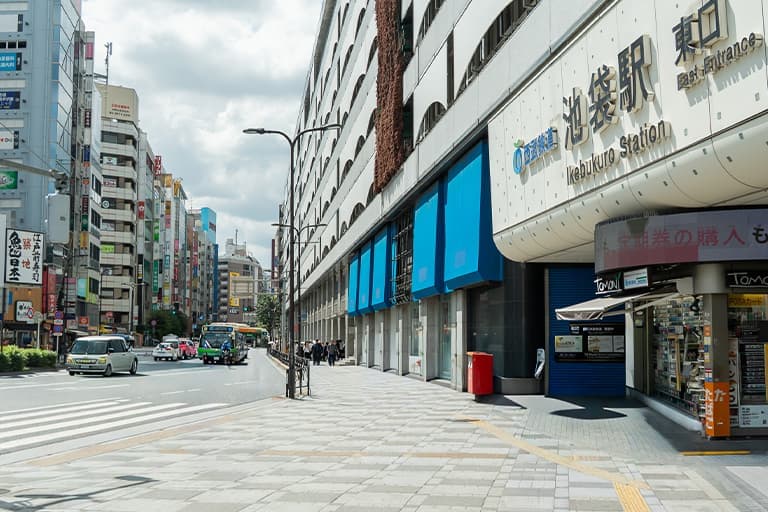 駅を右手にして進み、正面に見える西武池袋本店方面へ向かいます。3
