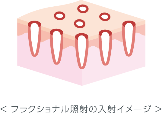 フラクショナルCO2レーザーは、従来のフラクセルレーザーに比べて痛みや処置後の発赤が比較的少ないことが特徴で、マイクロドット状にレーザーを照射し表皮に小さな点の穴を開けることで皮膚の再生・ターンオーバーを促す治療です。